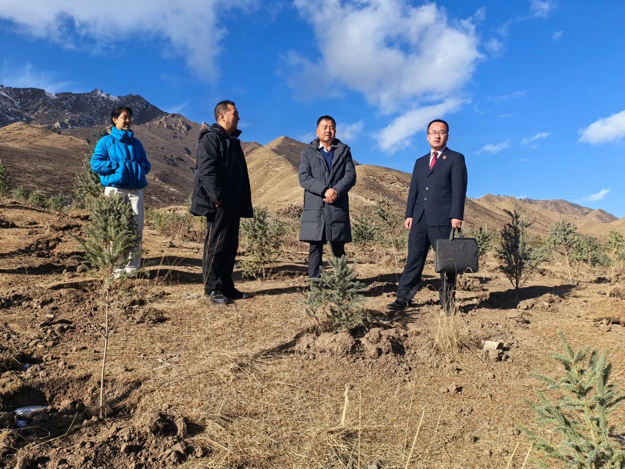 近日,祁连山林区人民检察院联合祁连山林区法院,对甘肃祁连山国家级自然保护区管护中心大河口自然保护站“2025年扁都口公益诉讼生态修复基地异地造林修复项目”开展了第一年补植复绿验收工作。经验收组实地踏查与数据核验,该项目造林成活率达80%以上,土壤改良、植被覆盖等指标均符合生态修复技术规范,顺利通过首年验收。